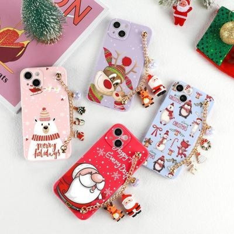 Мультфильм Санта Рождественский подарок 3D Кукла Цепочка Телефон Чехол для iPhone 13 12 11 Pro Max S